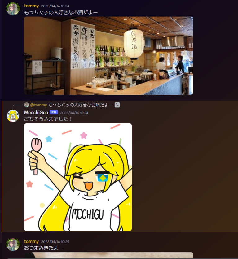 飯テロの画像を投稿すると、コメントと一緒に画像を返します。