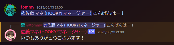 HOOKY!のdiscordに搭載されている佐藤マネージャーBOTです。